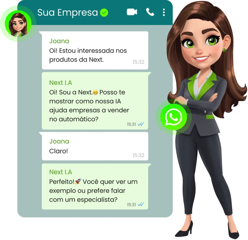 Nossa Super Agente Next vai transformar o WhatsApp da sua empresa em uma máquina de vendas, qualificando seus leads e fazendo conversões.